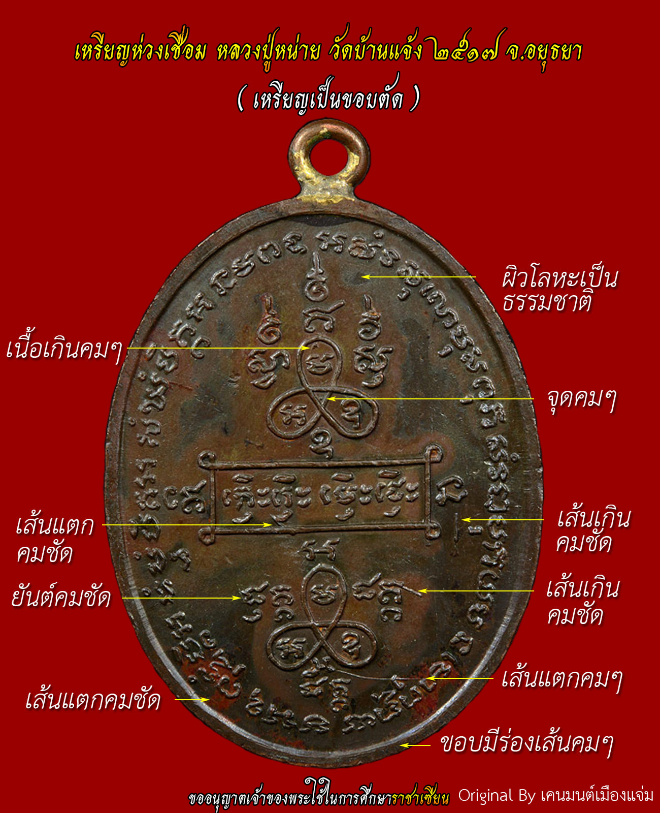 ลักษณะเป็นเหรียญปั๊มกลมรูปไข่ หูเชื่อม คือปั๊มเหรียญขึ้นมาก่อน เชื่อมหูทีหลังด้วยทองเหลือง